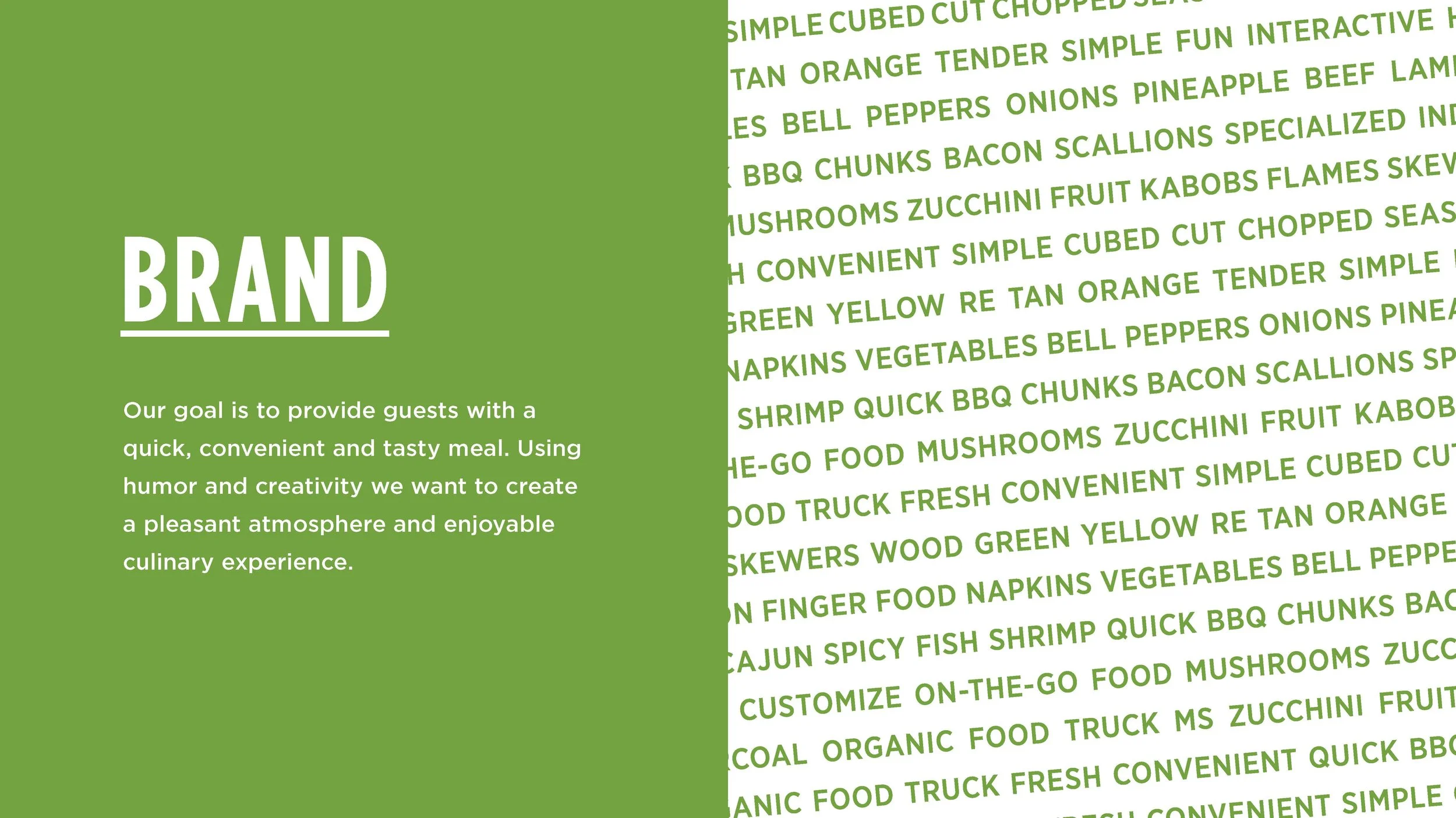Fun and cheeky brand that emphasizes the convenience and diverse flavors of gourmet shish kabobs.