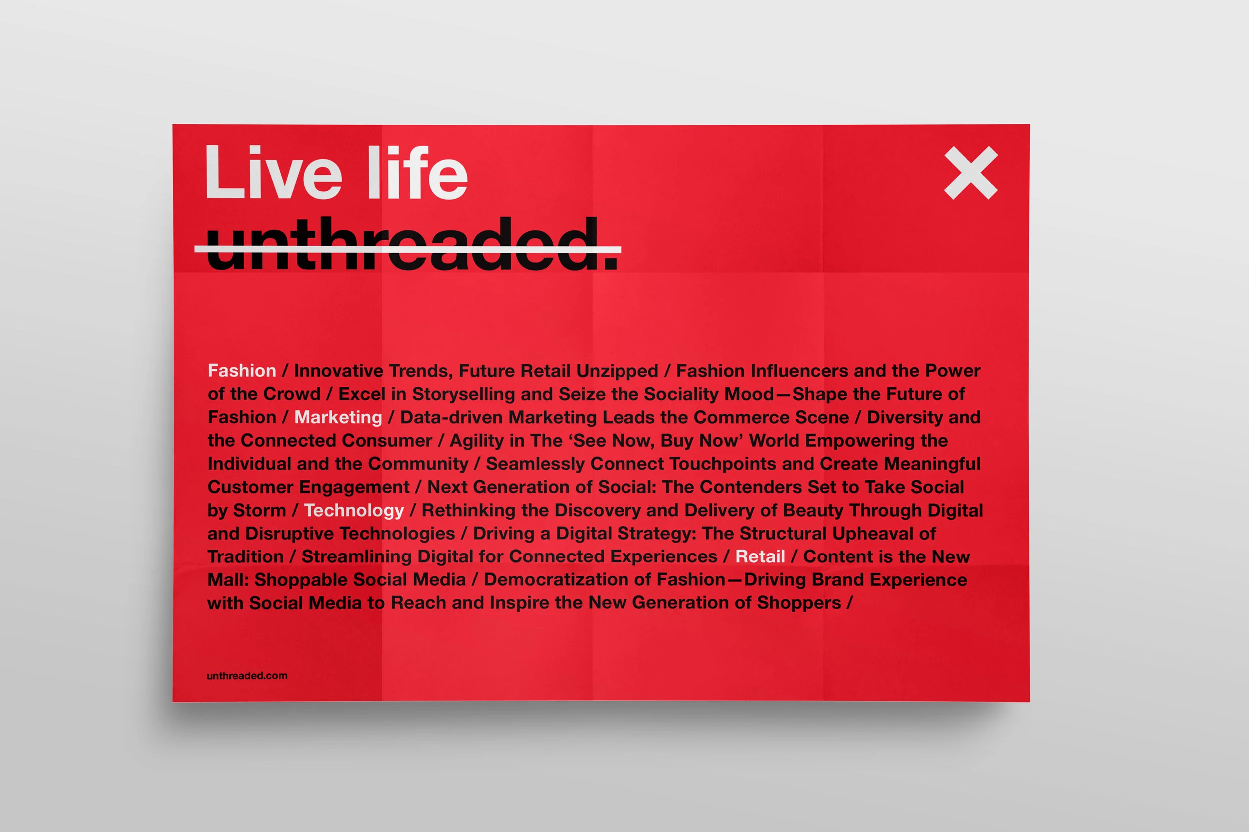 Unthreaded is an event and movement to challenge conventional thinking, inspire actionable ideas and spark innovation. This conference transcends the world of fashion and seeks to unravel how fashion, culture and design affect each other as well as everything we make, feel and do.